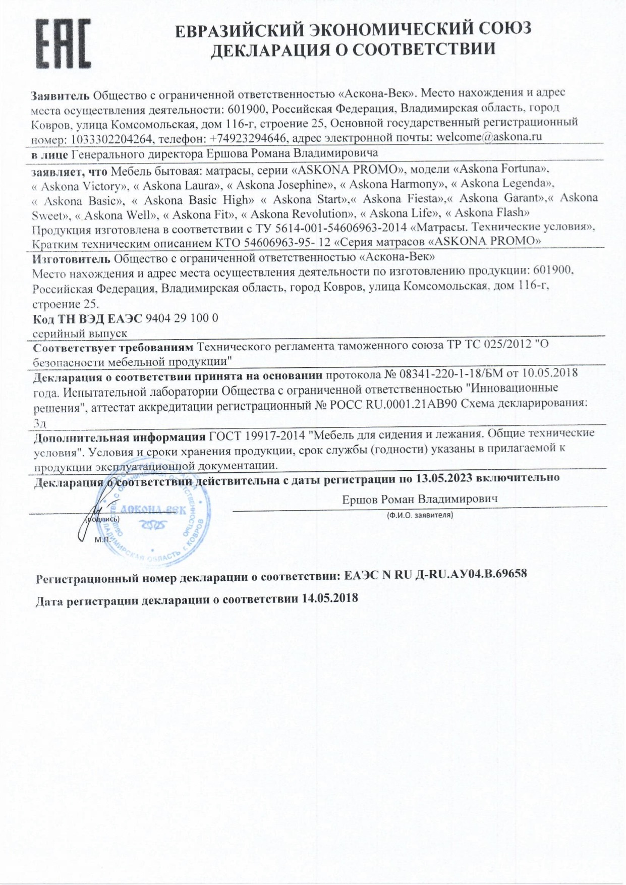 - Продукция имеет сертификат соответствия